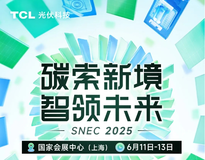 在全球能源转型加速推进的关键节点,SNEC第十八届(2025)国际太阳能光伏与智慧能源(上海)大会暨展览会,即将于6月11日-13日在上海国家会展中心启幕。作为全球清洁能源领域的重要参与者和推动者,TCL光伏科技此次将带来创新场景方案与商业模式,并以AI赋能全链,展现高效发电效益,在不确定性中寻找确定性,于技术迭代中锚定价值坐标。TCL光伏科技诚邀您莅临6.2H馆E670展位碳”索TCL光伏科技的创新力量,期待与您相聚SNEC 2025.共绘智慧能源未来新版图。