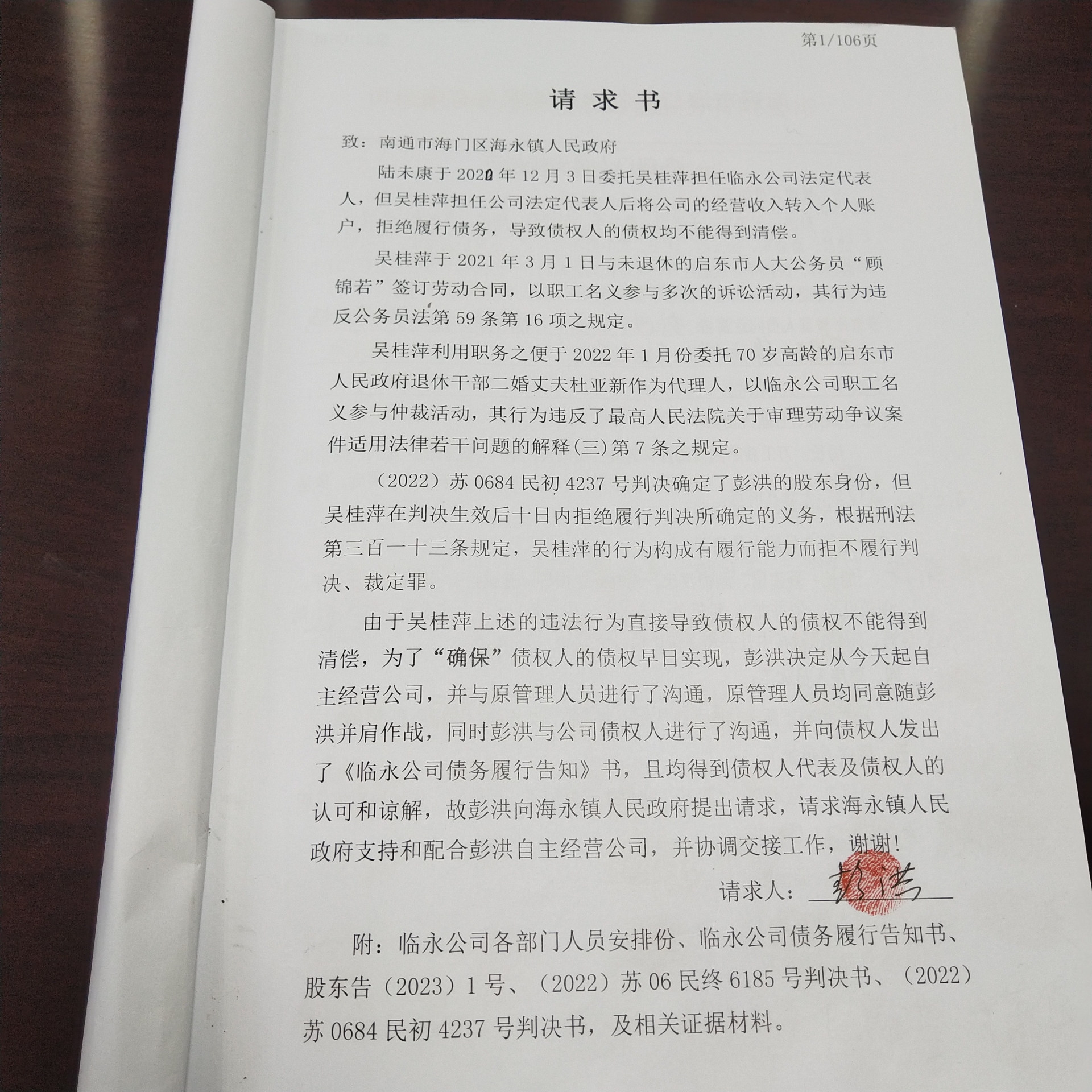 陆未康于 2020 年 12 月 3 日委托吴桂萍担任南通市海门区临永运输服务有限公司法定代表人,但吴桂萍担任公司法定代表人后将公司的经营收入转入个人账户,拒绝履行公司债务,导致债权人的债权均不能得到清偿。