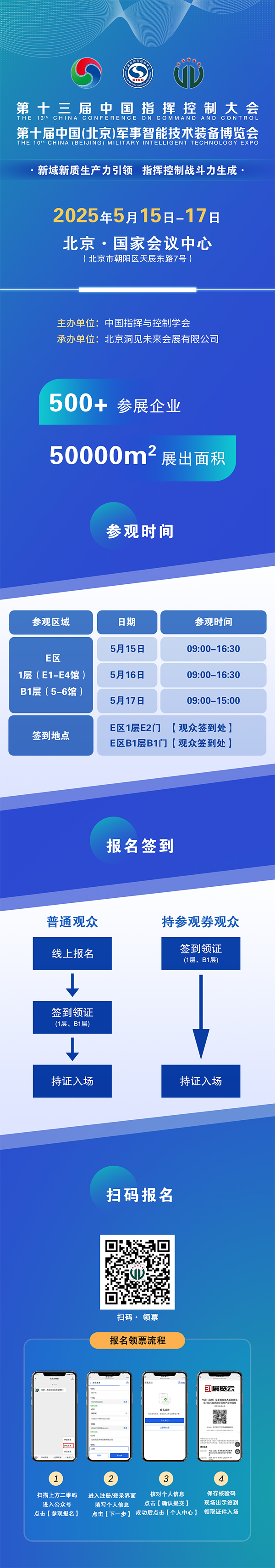 中国指挥控制大会暨北京军博会是由中国指挥与控制学会主办,北京洞见未来会展有限公司承办的军民前沿技术领域综合性大型学术交流和科技成果展示活动。从2015年开始,至今已连续成功举办九届,累计展览面积近20万平方米,参展企业2300多家,参观人数24万余人次,中国指挥控制大会暨第十届北京军博会将于2025年5月15日-17日在北京国家会议中心举行,展览面积50000平米。届时将邀请政府、军队、武警、公安、交通、人防、航天、航空、兵器、船舶、电科集团等从事军民技术与产业领域的60000名代表到场参加。