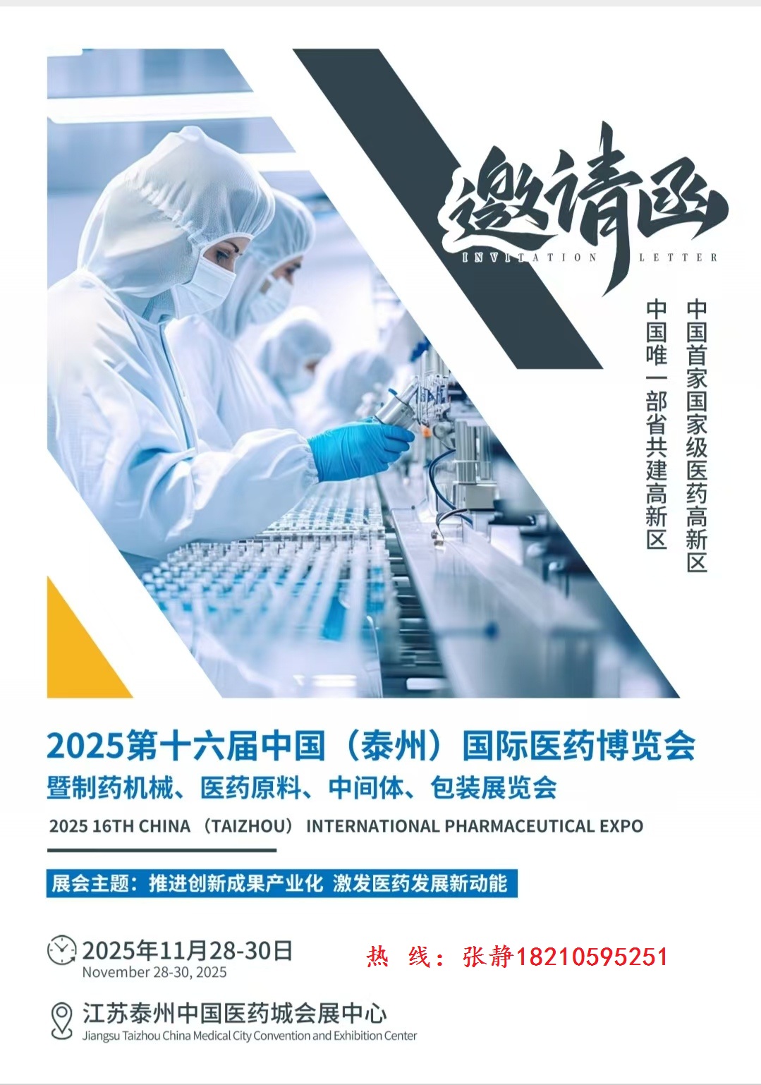 经过 15 年的积累沉淀,中国(泰州)国际医药博览会已发展为国内外展示创新技术成果的最佳舞台,增进交流合作的桥梁纽带,观瞻行业未来发展的“风向标”第十六届医博会与中国医药城大健康产业发展论坛将于2025年11月28日--11月 30日在江苏泰州中国医药城会展中心同期举行。展会聚焦“推进创新成果产业化、激发医药发展新动能”主题,紧紧围绕泰州大健康产业特色优势,集聚国内外高校院所、研发服务机构、供应链企业以及知名龙头企业、行业先锋代表,举办专业高峰论坛、展示创新技术产品、搭建供应链交流平台、开展项目对接合作等系列活动,助力成果对接交易,增进合作交流,推进共同发展。让我们面向产业未来,寻合作良机,聚发展伟力。我们热忱期待,海内外医药及大健康各界嘉宾相聚中国医药城,共赴时代之约!