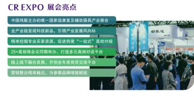 创展于2005年的2022中国国际福祉博览会暨中国国际康复博览会2022Care & Rehabilitation Expo China ,中英文简称:CR Expo北京福祉展,是我国创展早、规模大、知名度高、影响力广的残疾人康复事业政商综合博览盛会。已成功举办了15届,在中国残疾人联合会的主导下,大会展览规模以倍数级的增长模式快速成长,自创展至今,多年多届的成功举办,累计展览规模30多万平方米,是全球福祉行业首屈一指的盛会。每年开展吸引来自国内外海量的残疾人康复产品和服务,累计四万多款福祉产品、技术和服务亮相。